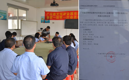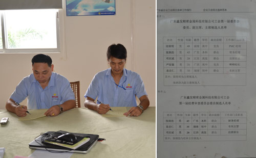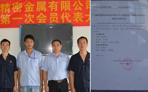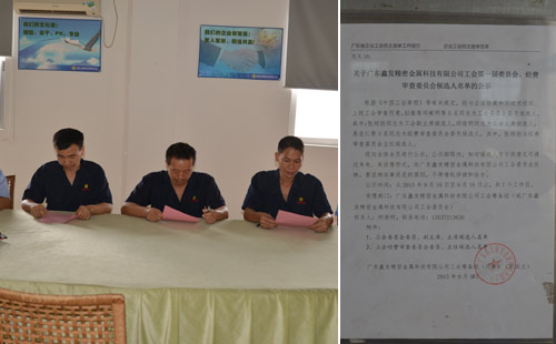 9月10日鑫發(fā)金屬公示了工會第一屆委員會、經(jīng)費審查委員會的候選人的名單。9月14號召開廣東鑫發(fā)精密金屬科技有限公司工會第一屆第一次會員代表大會,會議選舉產(chǎn)生第一屆工會委員會和經(jīng)費審查委員會的主席、副主席、委員和主任。